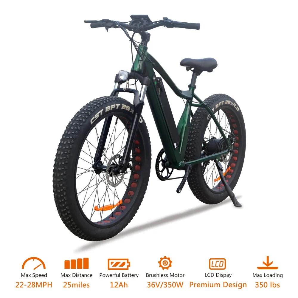 VTUVIA 26 * 4.0'' Fat tire Mountain Electric bicycle 36V Li-ion battery 350W Brushless Motor E Bike 50km Long Distance Ebike